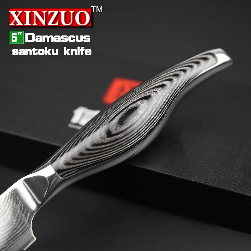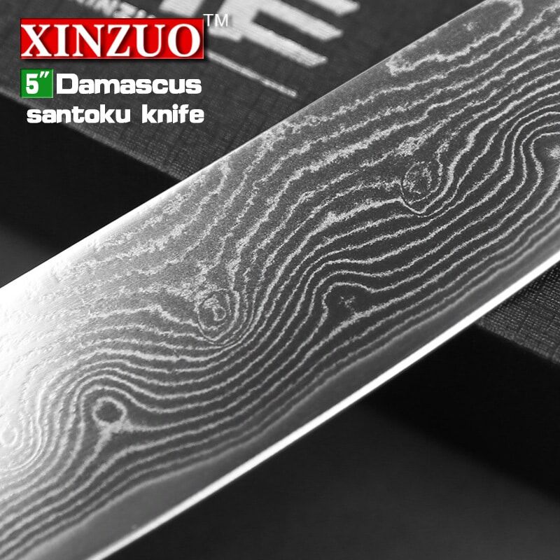 Product name : 5 inches Damascus Japanese chef knife (santoku knife). Parameters : length: 251 mm, blade length: 124 mm, blade width: 28mm,blade thickness: 1.8 mm, net w