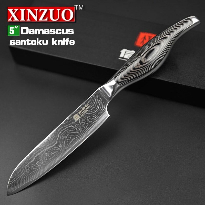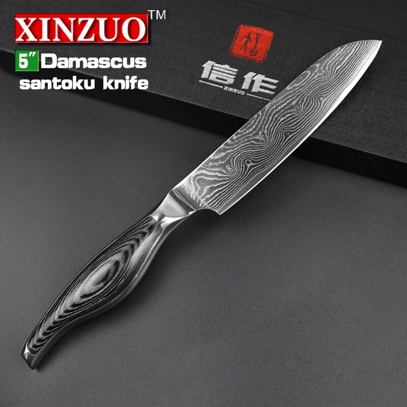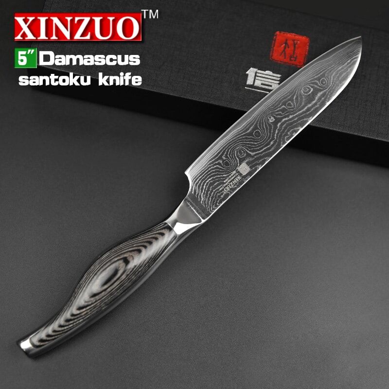 5″ inches santoku knife Japanese VG10 Damascus kitchen knives Japanese chef fruit knife forged wood steel handle FREE SHIPPING