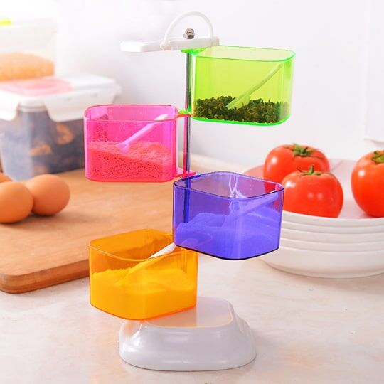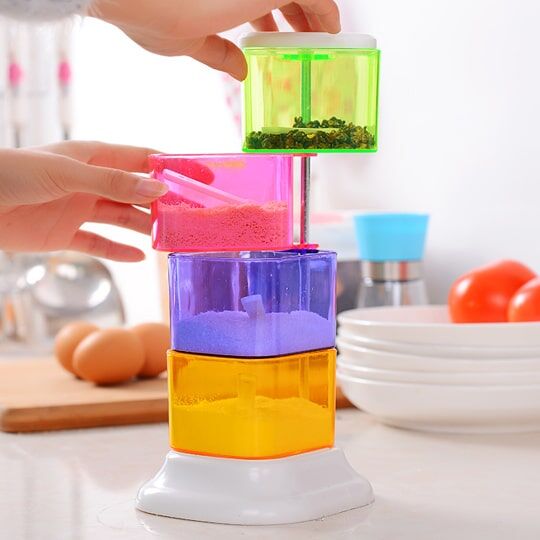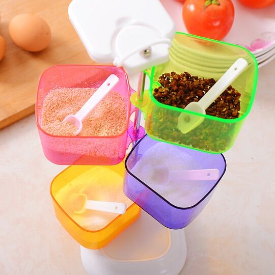 Sticking Rotary Seasoning Kitchen Pepper Sugar Jar Spice Rack Food Box Storage